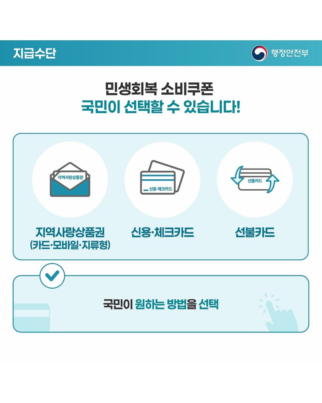- 지역사랑상품권 (카드, 모바일, 지류형 중 택)