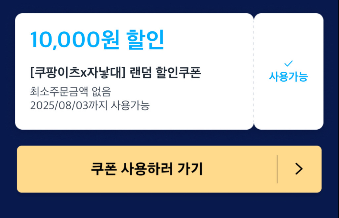 발급 여부는 [마이페이지 → 쿠폰함]에서 직접 확인해야 함. 쿠폰함에 확인이 안 된다면 로그아웃 후 재로그인하거나 앱 업데이트 후 재접속해보는 게 좋음. 발급 대상인데도 쿠폰이 안 보이는 경우는 대부분 로그인 꼬임이나 버전 문제.